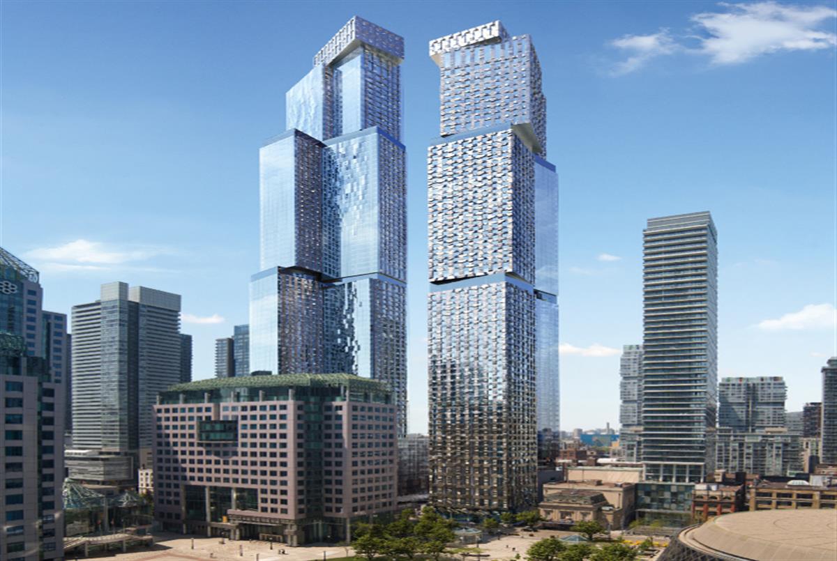 Standing 73 and 84 storeys tall at the nexus of the entertainment and financial districts in Toronto,